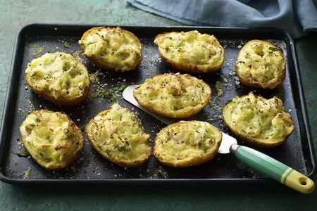 Recept na vychadnyja. Bulba, faršyravanaja traskoj, — strava dla siamiejnaha abiedu33