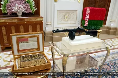 Łukašenka padaryŭ sułtanu Amana pistalet-kulamiot Špahina55