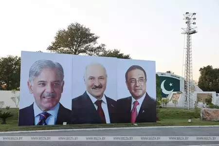 «Novaja era supracoŭnictva». U Isłamabadzie da vizitu Łukašenki źjavilisia biłbordy na biełaruskaj movie FOTAFAKT33