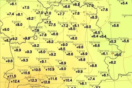 Учора ў Пінску было +12,8°C, у Мінску +9°C11