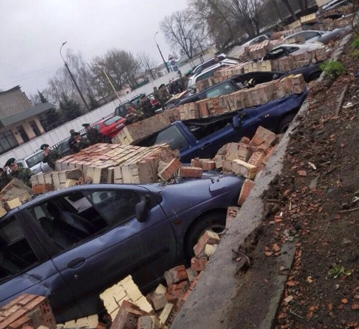 Под завалами оказались машины пограничников. Пострадали три Volkswagen-а, два Renault, Citroen, Toyota, Honda и BMW-525.
