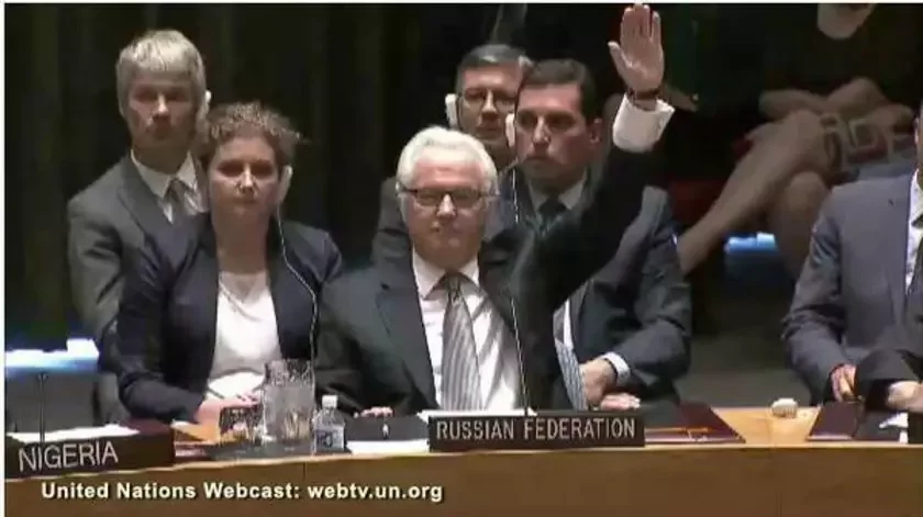 За — 11 голосов, воздержались трое: Китай, Венесуэла и Ангола. Россия единственная голосовала против и, как постоянный член Совета безопасности, наложила вето.