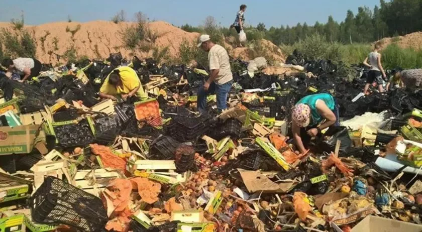 Фото: жители Смоленщины собирают недодавленные санкционные продукты