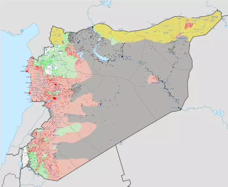 Силы Асада на сегодня контролируют около трети территории Сирии. Еще две трети в руках различных властей.