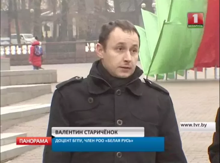 Первым из кандидатов в депутаты от «Белой Руси» появился в эфире телеканала «Беларусь-1» доцент Белорусского государственного педагогического университета Валентин Старичёнок.