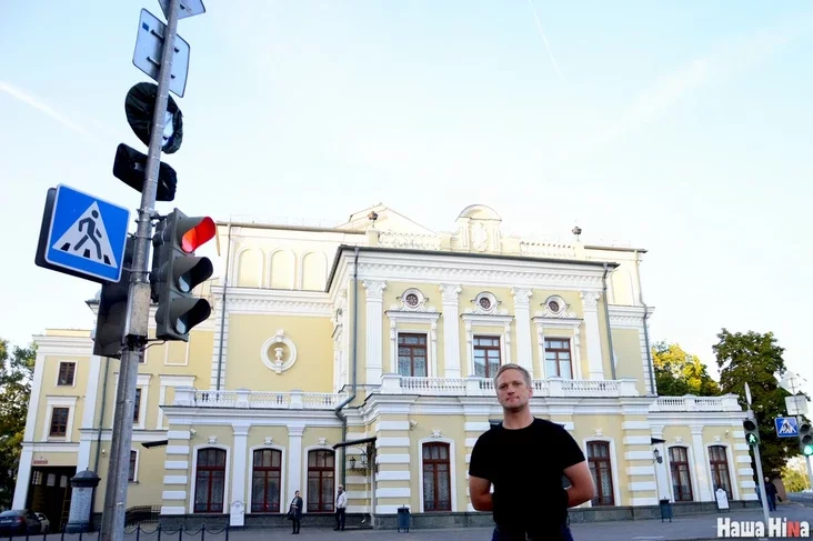 Мы приближаемся к Купаловскому театру, первоначальное здание которого было построено еще в XIX веке. Михаил, правда, решает, что это церковь. Вот в этой самой «церкви» нам и предстоит наблюдать за игрой актеров, которые постараются перенести зрителей в 30-е годы прошлого века.