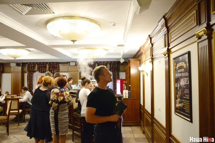 В антракте кто-то спускается в туалет, кто-то подходит к зеркалу, а кто-то — в буфет. Попробовать себя в классической киношной ситуации «театр-антракт-коньяк» Михаил отказывается, поскольку алкоголь позволяет себе только по большим праздникам. А вот подкрепиться он, может, и хотел бы, но очередь в буфет огромная. «Так в зале можно будет доесть, если что?», — интересуется Михаил. Когда я объясняю, что оно-то, может, и не запрещено, но считается дурным тоном, видно, что он недоволен.