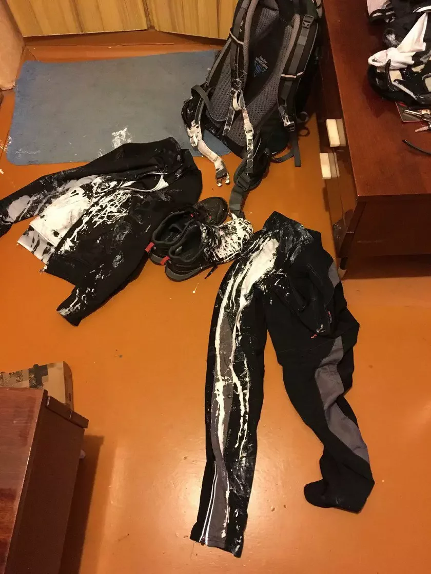 Вчера, когда мужчина выходил из подъезда, в его сторону полетела краска: незнакомец, лет сорока, несколько раз плеснул на Александра из банки. Хулиган пытался сбежать, но Александр догнал его и попытался выяснить, зачем тот это сделал. Ответ был прост: «Достал фотографировать и закладывать в ГАИ».
