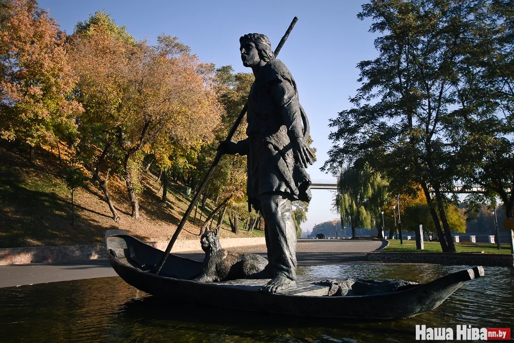 Рысь попала даже в лодку пращуру-радимичу, памятник которому стоит на набережной Сожа, под дворцом, недалеко от пешеходного моста.