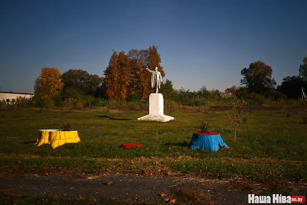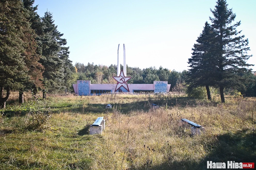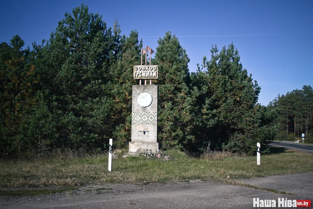 Сквозь асфальт пробиваются молодые деревца, стоят бетонные скелеты каких-то зданий. Нетронутым остался только обелиск памяти земляков, погибших в годы Второй мировой — в их числе два родных брата Андрея Громыко.