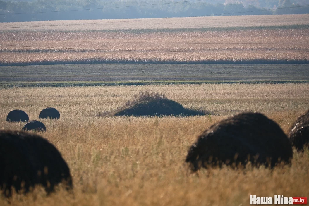 Еще несколько курганов чудом сохранились в поле, просто среди осенних тюков соломы…