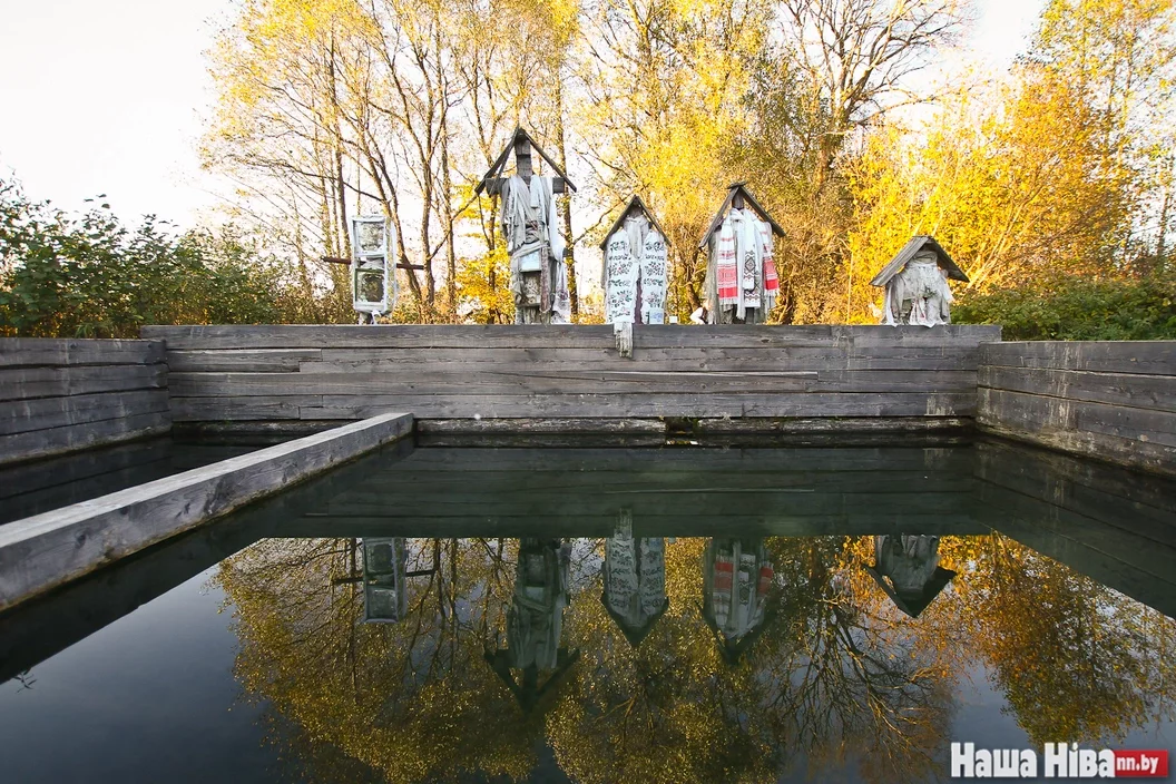 Большого паломничества к кринице нет, но видно, что ее подновляют: поставили новый сруб. Воды в нем где-то по пояс, на дне кипят, выбрасывая песок, холодные ключи. Напиться воды можно из металлических кружек на цепях. В купели стоит небольшая щука: заплыла, по-видимому, из Ковпиты, пограничной белорусско-российской реки, в которую родничок впадает.