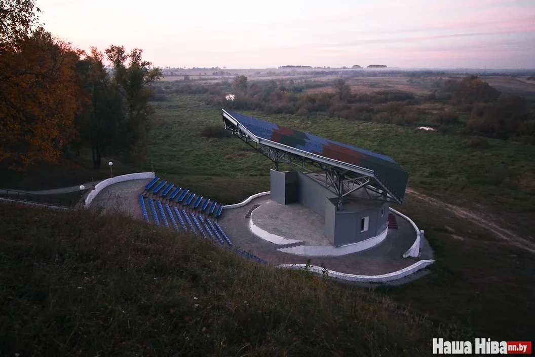 Сейчас на замчище отличный старый парк. А на спуске к Сожу, в который после разоблачения культа личности бросили памятник Сталину, стоит трансформер пластикового амфитеатра, к которому идет лестница с круглыми фонарями. Умея, любой пейзаж можно испортить.