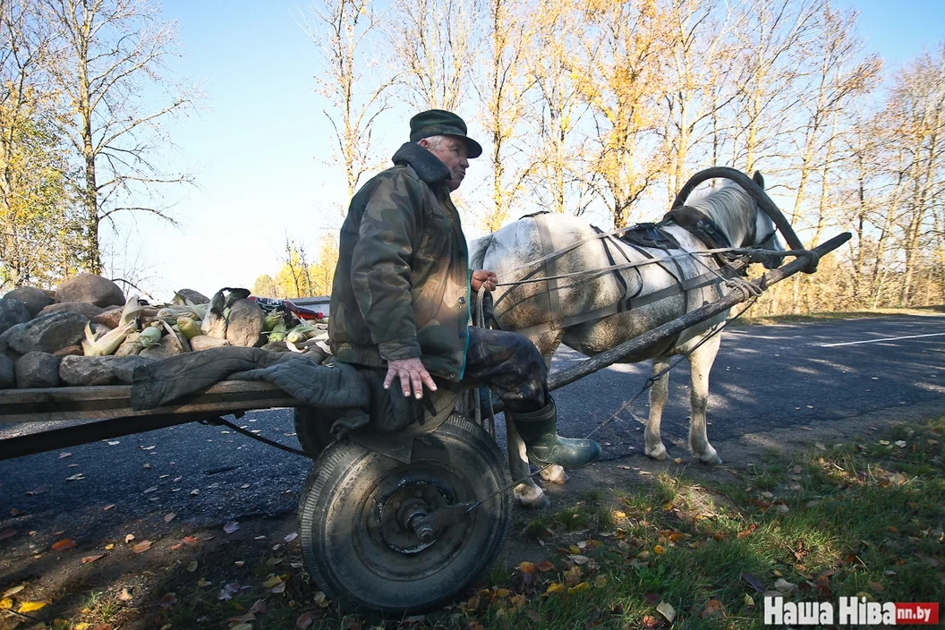 Спрашиваем дороги на Шеломы у деревенского дядьки, который своей частной кобылой Люськой везет камни в баню.