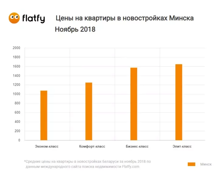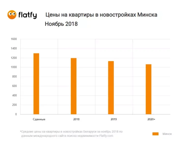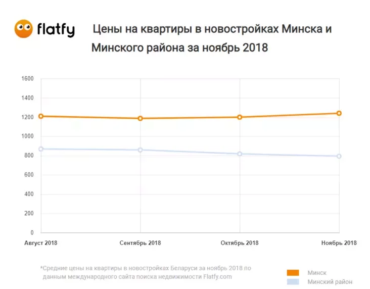 По данным статистики Flatfy.by, средняя цена квадратного метра в новостройках Минска по итогу ноября 2018 составила чуть более $1240. Это на $41,4 больше, чем было месяцем ранее.