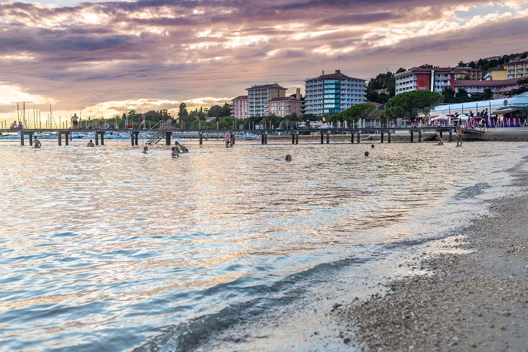 Для пляжного отдыха лучше выбрать Порторож — тот самый, куда «Аэротрэвел» организует чартерные рейсы с трансфером. Здесь есть насыпной песчаный пляж — экзотика для этой части Адриатики.