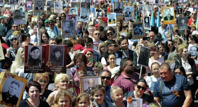 Десятки тысяч человек вышли на «Бессмертный полк» в Алматы, несколько тысяч — в столице страны, Нур-Султане. Государственные СМИ Казахстана репортажей об этом не дали, официальные власти участия в акции не принимали.