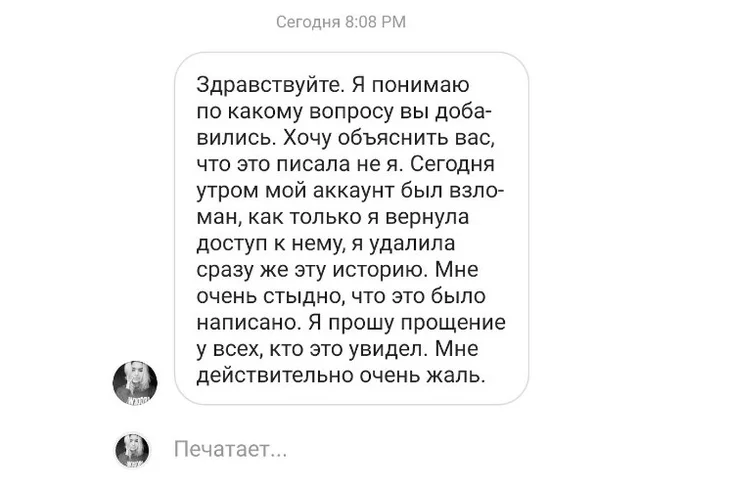 Девушку буквально забросали сообщениями. Каролина пыталась отвечать, мол, на самом деле ее взломали, и она такого не писала.