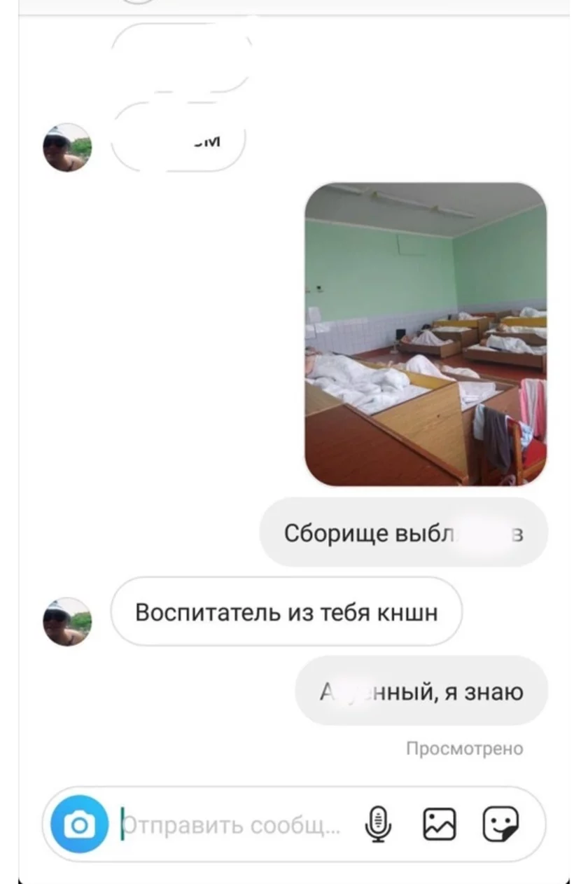 В сеть попал скриншот переписки 19-летней Каролины Саникович, воспитательницы одного из детских садов Солигорска. В личной переписке девушка выложила фотоснимок, сделанный во время тихого часа и подписала его: «Сборище выб***в».