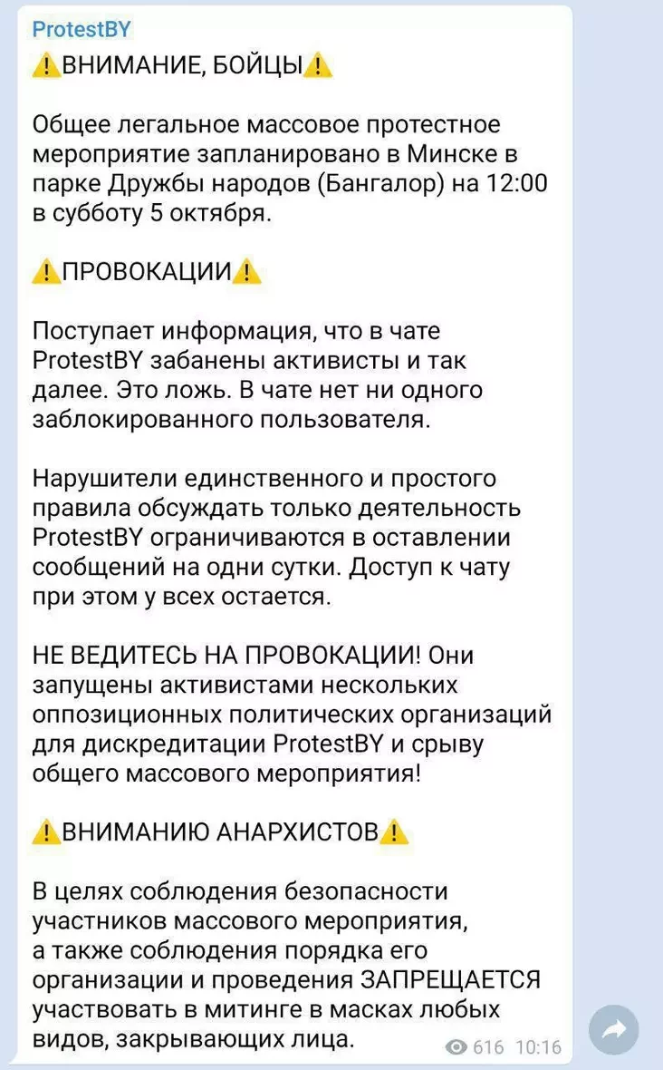 Между тем, призыв не поддерживать «сепаратистов» был размещен в телеграм-канале @ProtestBy, который, по словам Тихоненко, контролируется им. Сам писал и не видел?