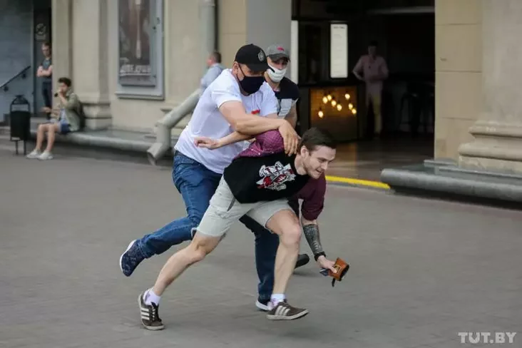 Сегодня вечером в столице снова замечены автозаки — у Александровского сквера у дома офицеров. Тем временем фотокорреспондент стал свидетелем того, как у Октябрьской площади у перехода в станцию метро люди в штатском задержали дух парней, которые заказывали кофе. Один из них был в майке с погоней, у второго на рюкзаке была наклейка с погоней, сообщает Tut.by.