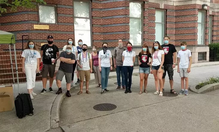 На фото: группа, которая проводит экзит-пол в белорусском посольстве в США, с избирателями.