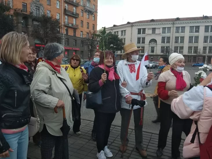 Я настолько рассердилась! Остальные пенсионерки, увидев, как меня ударили, подбежали. Одна из них сказала: «Нас, пенсионеров, избивают меньше остальных, поэтому мы должны стоять первыми». И мы стали в сцепку. И с такой решимостью мы стояли, чтобы только не пропустить омоновцев к людям.