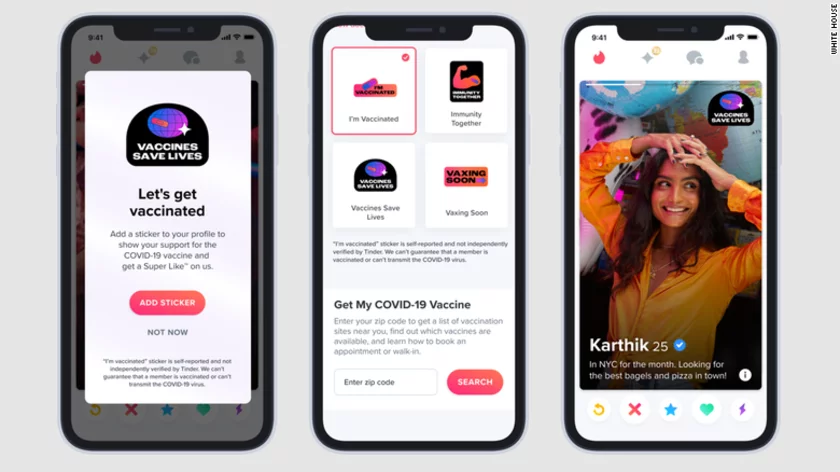 Пользователи Tinder смогут разместить в своем профиле значок, который будет указывать на пройденную вакцинацию, и за это получить бесплатный «суперлайк». Другие приложения предлагают пользователям свои бонусы или скидки на премиум-версии.