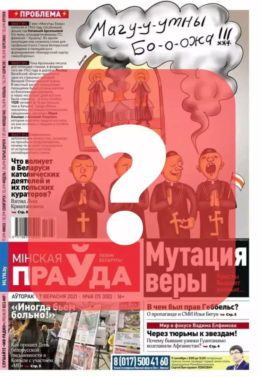 Пресс-секретарь Католической церкви в Беларуси Юрий Санько прокомментировал первую полосу последнего номера газеты «Минская правда», где у священников вместо крестов изображены свастики