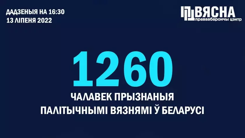 Всего в Беларуси по состоянию на 13 июля признаны политическими заключенными 1 260 человек.