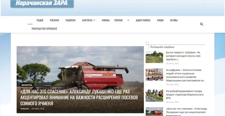Первое, что замечаем: на этом сайте фамилия Лукашенко встречается чаще всего разве что в перепечатке новостей из государственного агентства БелТА. Здесь также минимальное количество перепечаток из госресурсов и достаточно собственных текстов. Возьмем, например, материал «Здесь жизни их причал: семья врачей Кишко работает в «Зубренке» или фоторепортаж с отдыха на Нарочи.