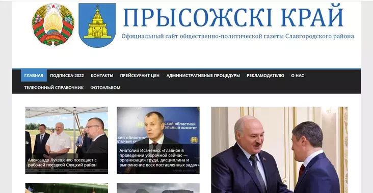 Славгородская районка имеет название «Прысожскі край», но новостей об этом самом крае там не слишком много. На главной странице сайта — тексты о уборочной кампании, встрече Лукашенко с губернатором Пермского края и изменениях в законодательстве.