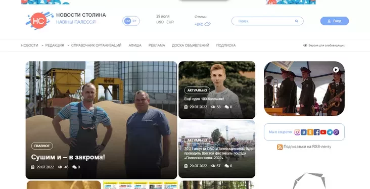 В мае столинцам платили в среднем 1 124 рубля, что является самой низкой цифрой по Брестской области. Сайт местного издания «Новости Полесья» разработан более детально, чем прошлый ресурс из подборки: здесь вам и приглашение в соцсети, и раздел с фото и видео, и даже отдельный раздел с мнениями.