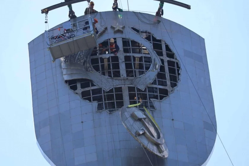 За демонтажем сегодня наблюдал и.о. министра культуры и информационной политики Ростислав Карандеев.