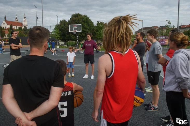 Поиграть в баскетбол солнечным вильнюсским вечером пришло более 20 человек всех возрастов, которые разбились на четыре команды, пишет «Новы час».