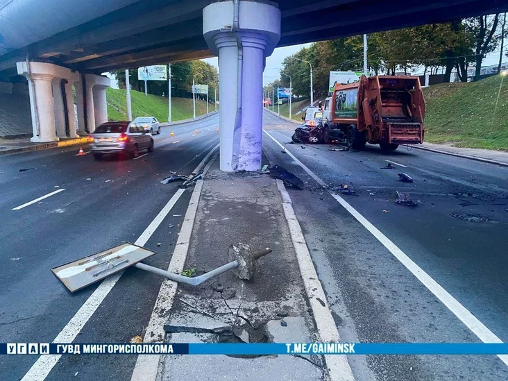 По предварительной информации ГАИ, сегодня около 06:40 23-летний водитель электромобиля сервиса «Яндекс. Такси» на улице Маяковского не справился с управлением и выехал на разделительную полосу. Машина повредила стойку дорожного знака, протаранила бетонную опору железнодорожного моста. От удара авто отбросило на мусоровоз.