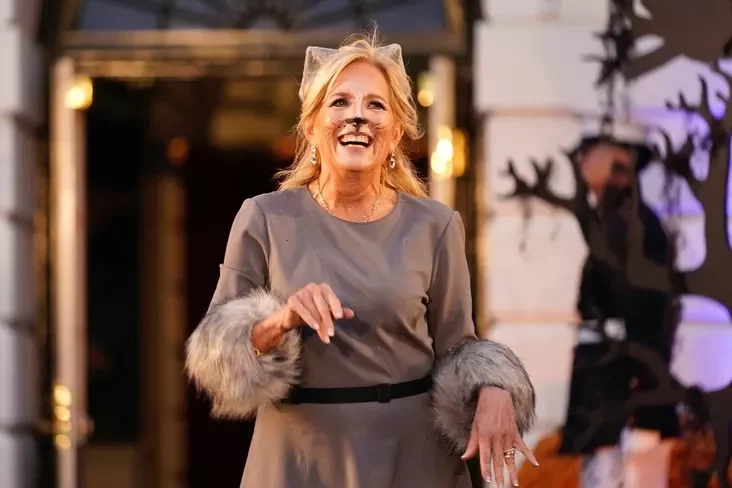 Первая леди сказала, что оделась как ее кошка: костюм Джилл включал кошачьи ушки, хвост и черный нос. Всего на празднование пригласили около восьми тысяч гостей.