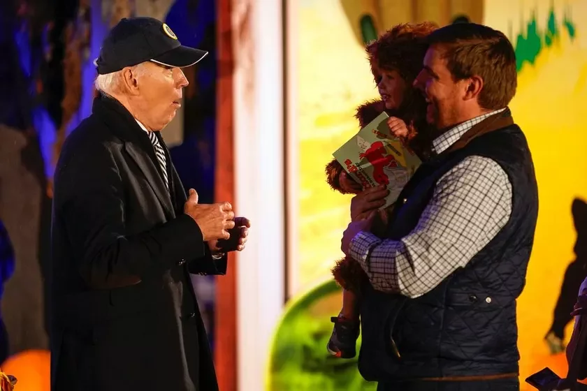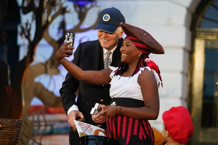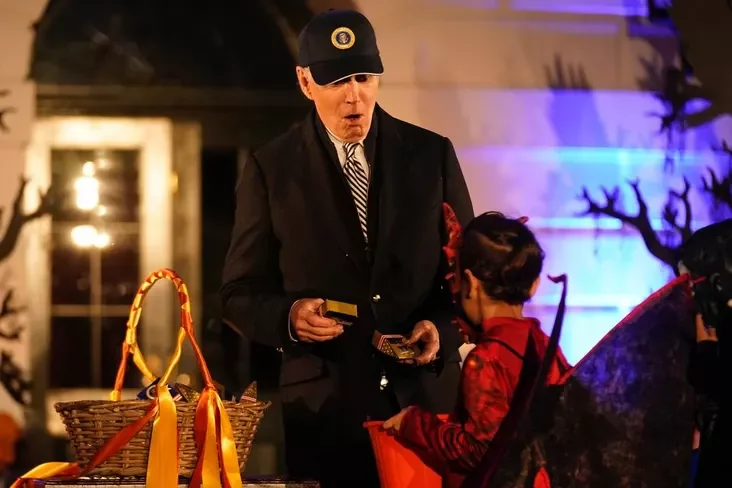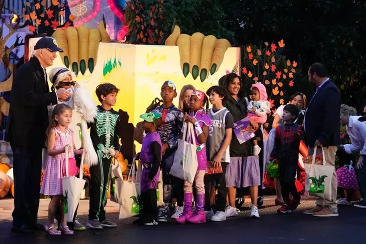 Президент США Джо Байден и его жена Джилл угощали детей конфетами и дарили книги.