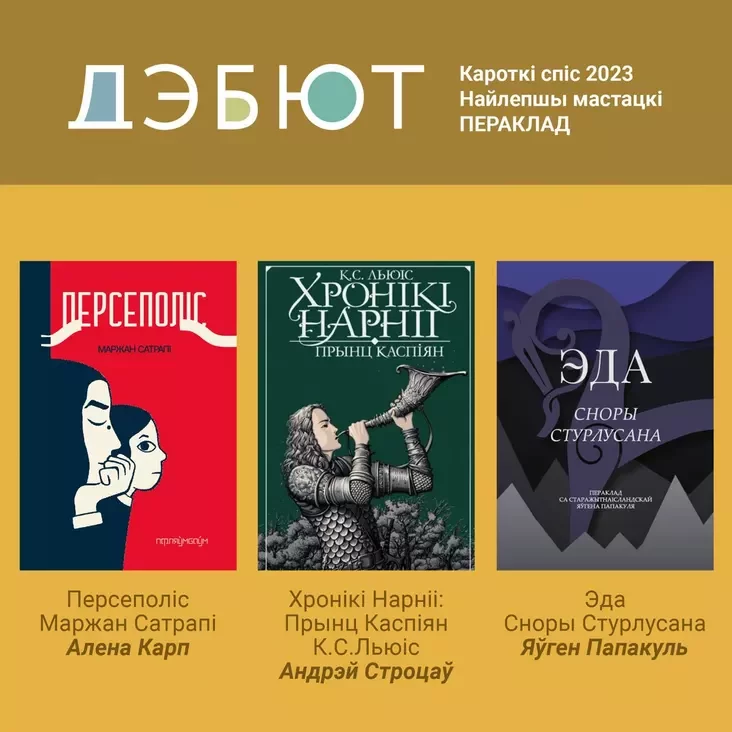 - Елена Карп за перевод с французского языка книги Маржан Сатрапи «Персеполіс» — Издательство «Янушкевіч» («Пфляўмбаўм»), Минск, 2022.