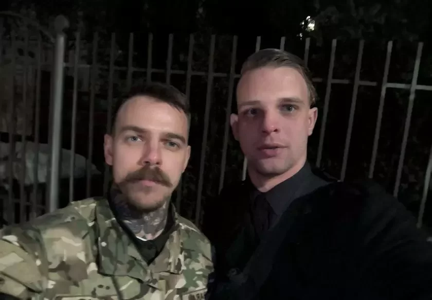 Фото бывшего бойца батальона «Азов» Станислава Гончарова с позывным «Террор-машина» появилось в соцсетях Полка Калиновского. Он снят с командиром воинского формирования Денисом «Китом» Прохоровым.