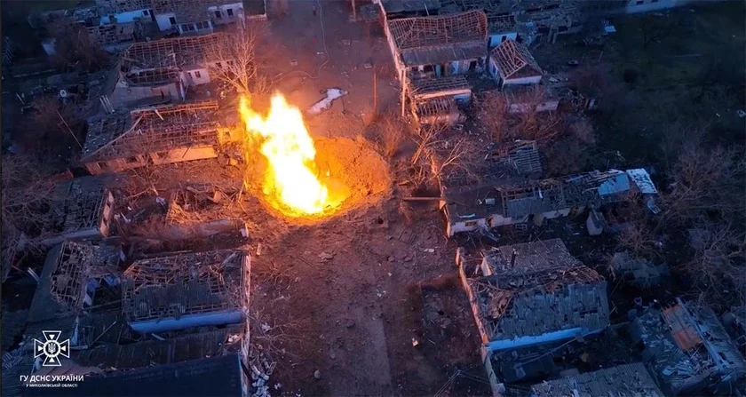В Николаеве в результате массированного удара российских войск загорелся газопровод.