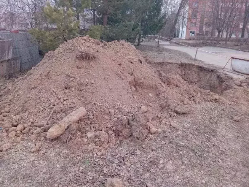 Рабочие быстро поняли, что выкопали бомбу и вызвали милицию, которая оцепила район с опасной находкой.