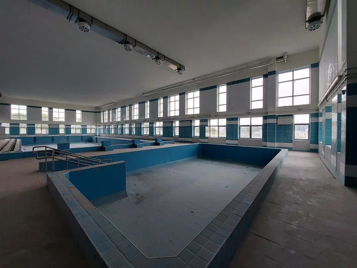 В актовом зале завершают укладывать паркет, а в спортзалах на этой неделе планируют монтировать снаряды. Бассейны уже готовы к заполнению водой.