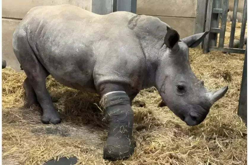 В Великобритании провели первую в мире операцию на сломанной ноге носорога