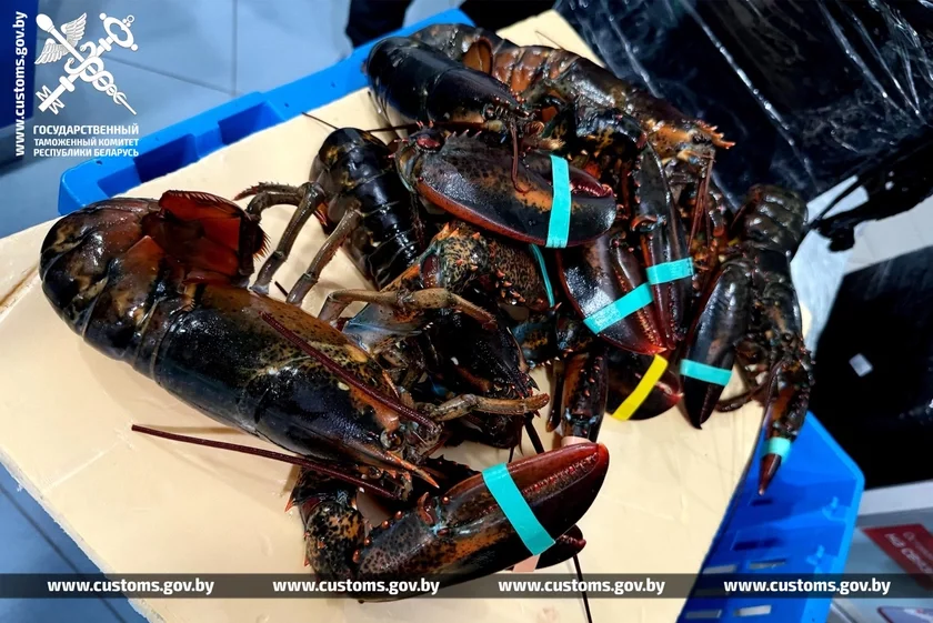 При досмотре багажа были обнаружены 5 коробок с коммерческой партией лобстеров на сумму 29 тыс. белорусских рублей, которые россиянин намеревался реализовать на территории ЕАЭС.