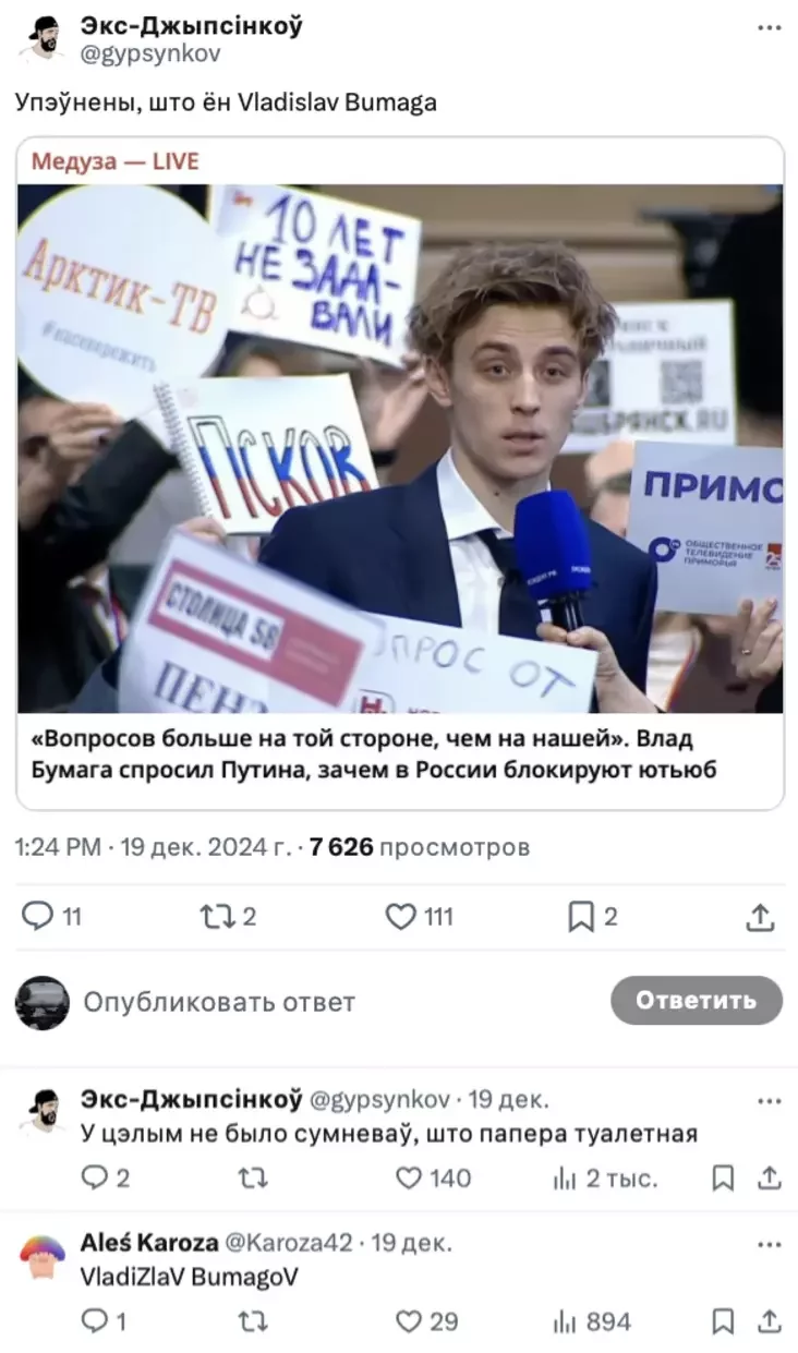 На этой неделе Twitter обсудил продажу всех билетов на концерт Макса Коржа, участие Влада Бумаги в прямой линии с Путиным и доходы белорусов.
