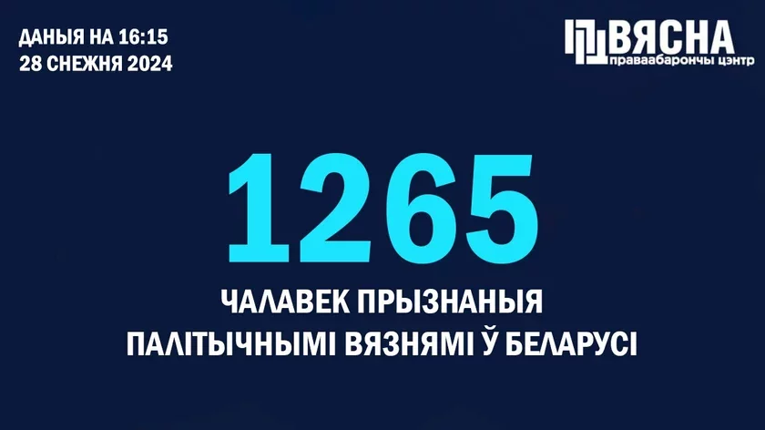 28 декабря правозащитники признали политзаключенными еще 12 человек. Общее число людей, признанных на сегодняшний день в Беларуси политзаключенными, составляет 1265 человек.