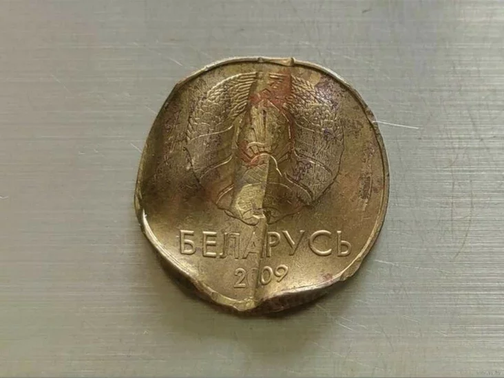 По словам продавца, монета имеет волнистую форму и следы сжатия, что делает ее непригодной для расчетов.