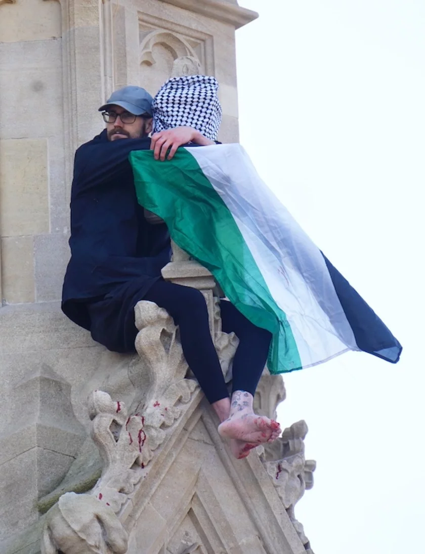 В Лондоне босоногий мужчина с палестинским флагом забрался на Биг-Бен