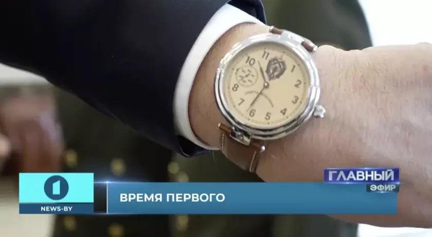 В кулуарах совещания у Лукашенко нынешние и бывшие кагэбэшники собрались тесным кругом и обсуждали свои часовые истории. Это показали по телевидению в анонсе к передаче «Время Первого».